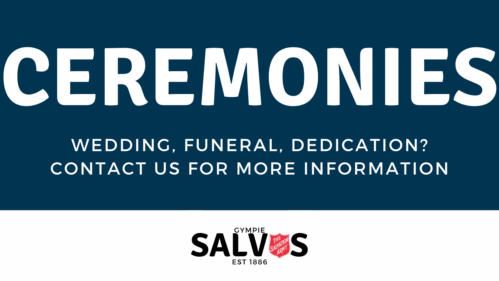 The Salvation Army is qualified to conduct Funerals, Weddings and Dedications of Children. Contact us if you would like more information.